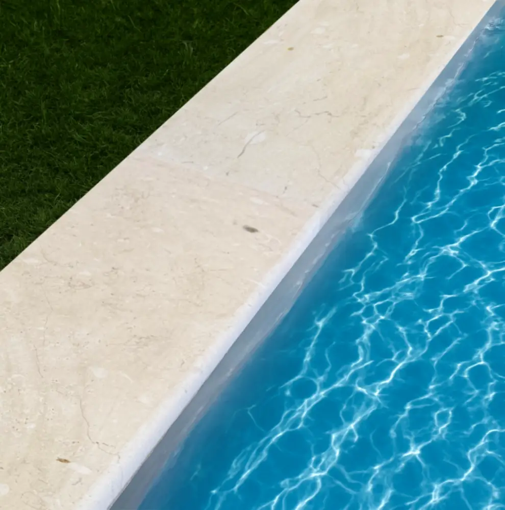 Chez Mineral Stones, nos margelles de piscine en pierre naturelle sont parfaites pour contour de piscine en extérieur ou intérieur. Nos margelles de piscine en pierre naturelle possèdent une épaisseur allant de 3 cm à 8 cm d’épaisseurs, elles garantissent une intégration harmonieuse et une protection efficace. Découvrez nos margelles de piscine en pierre calcaire. Que votre piscine soit enterrée ou hors-sol, en béton ou en coque polyester, les margelles en pierre naturelle seront parfaites pour votre bord de piscine. Nous réalisons également des bordures en pierre naturelle, couvertines en pierre naturelle, appuis de fenêtre et seuils de porte et notre gamme couvertine en pierre de Travertin, margelles de piscine en travertin, appuis de fenêtre et seuils de porte en travertin.