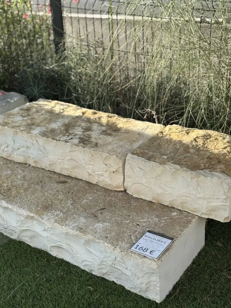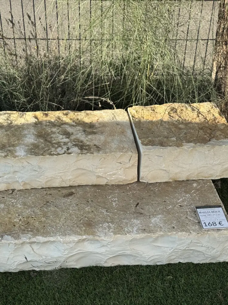 Chez Mineral Stones, nous proposons des marches d’escalier en pierre calcaire Maelia Beige, format 100 x 35 x 15 (168€TTC/ la pièce) et format 15x35x LL (144€TTC /mètre linéaire), à des prix compétitifs. Notre gamme comprend divers blocs de marche, escaliers et marches, adaptés aussi bien pour des aménagements extérieurs qu’intérieurs. La pierre calcaire Maelia Beige est réputée pour sa robustesse et sa durabilité, tout en offrant une esthétique raffinée. Ses teintes naturelles de beige, taupe et miel permettent à ces marches de s’intégrer harmonieusement dans tous les types de décors. Nous offrons également des solutions sur mesure et des blocs de marche dans différentes dimensions, pour répondre à vos besoins spécifiques.