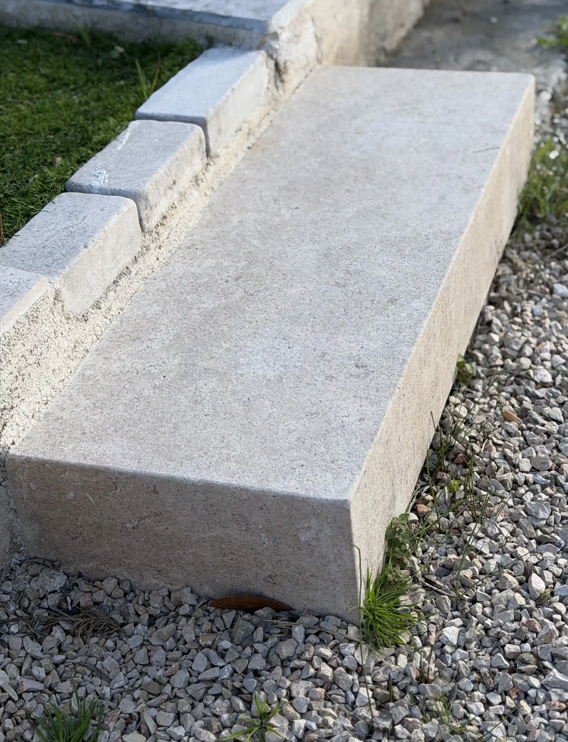 Nos marches escalier en pierre Siana Beige, format 15x35x100 cm, sont disponibles chez Mineral Stones à des prix attractifs. Nous proposons une large gamme de blocs de marche, escaliers et marches, spécialement conçus pour une utilisation en extérieur ou en intérieur. Fabriquées en pierre calcaire Siana, reconnue pour sa solidité et sa résistance, nos marches allient durabilité et esthétique. Avec ses nuances subtiles de beige, taupe et miel, la pierre naturelle calcaire Siana Beige s’intègre parfaitement à tous types d’environnements. Nous fournissons des blocs de marche de différentes tailles ainsi que des escaliers sur mesure, adaptés à vos besoins spécifiques.