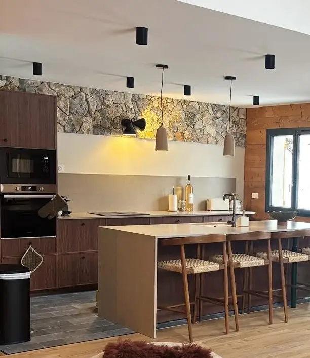 Le choix d’un mur en pierre de parement sans joint présente plusieurs avantages. Tout d’abord, il crée une esthétique visuellement attrayante grâce à la texture naturelle et l’aspect uniforme des pierres qui se fondent les unes avec les autres. Cela permet d’obtenir une continuité visuelle fluide, sans interruption, pour une apparence plus épurée. De plus, cette option est particulièrement appréciée pour sa facilité d’entretien, car l’absence de joints limite les zones de pénétration de saleté et d’humidité. Elle apporte également une touche de modernité, idéale pour les projets de design contemporains. Le parement sans joint est donc une excellente solution pour ceux qui souhaitent une ambiance raffinée et harmonieuse, que ce soit en intérieur ou en extérieur.